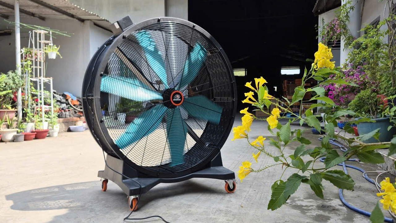 – Quạt thổi di động được thiết kế với bánh xe xoay và tay cầm tiện lợi, giúp dễ dàng di chuyển đến vị trí cần thiết trong nhà xưởng hoặc khu vực sản xuất mà không cần chức năng đảo chiều.