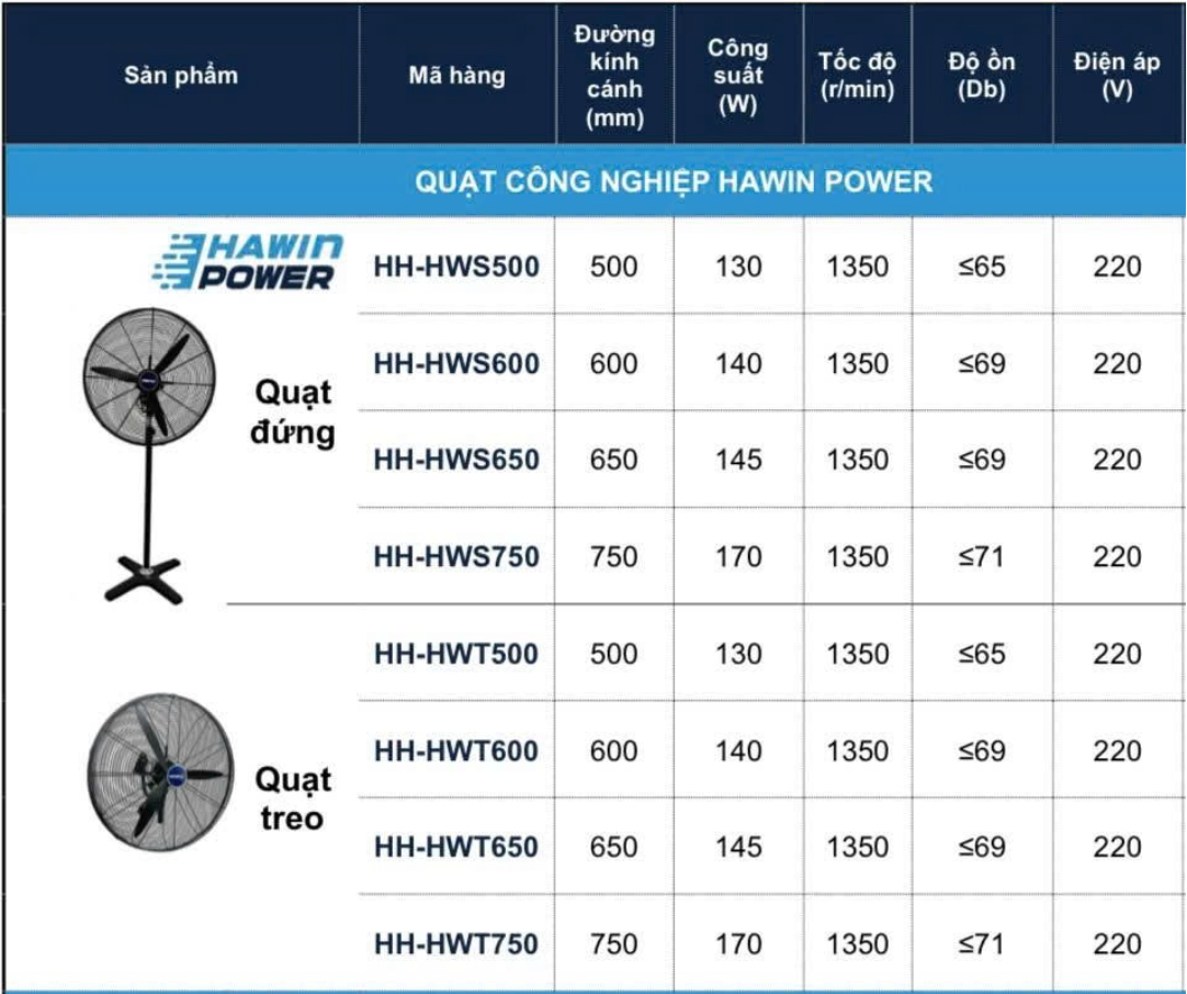 - Quạt công nghiệp Hawin Powero lưu lượng gió lớn, độ ồn thấp, ứng dụng rộng rãi. Phù hợp với những điều kiện môi trường khác nhau, chỗ đông người như: Nhà máy, nhà hàng, nhà kho, hội trường .....Dễ dàng sử dụng lắp đặt và di chuyển.