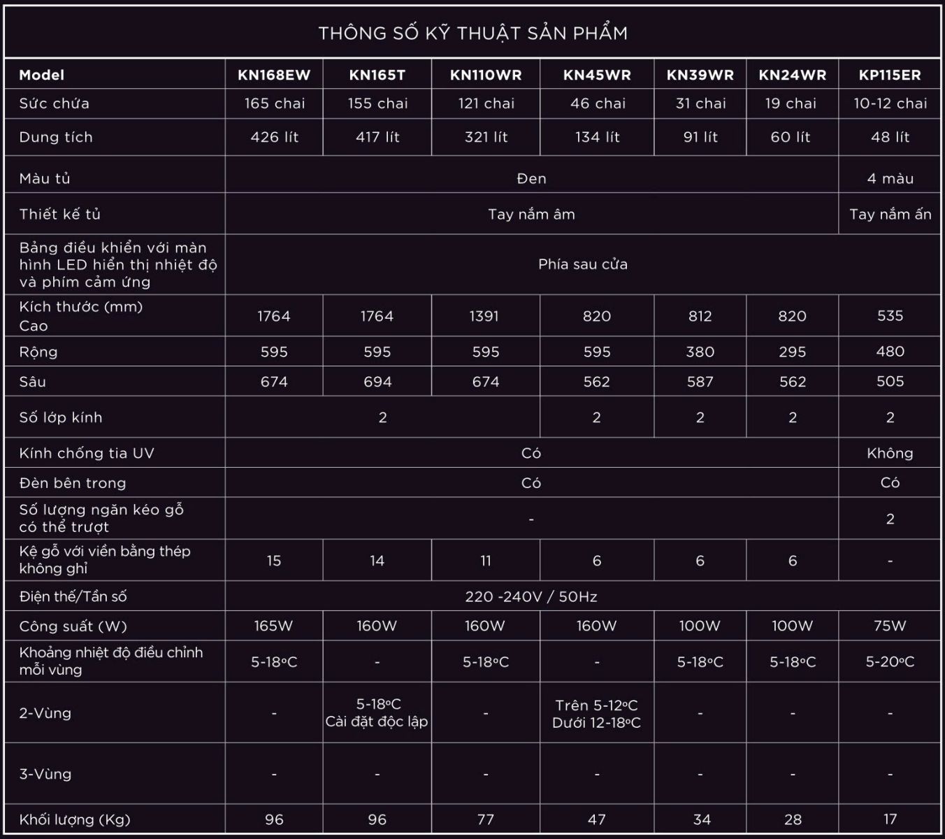 - Với cửa kính 3 lớp chống tia cực tím, ngăn chứa cài đặt lên đến 3 vùng nhiệt độ, khả năng chứa từ 15 đến 168 chai rượu, Kadeka là giải pháp dự trữ rượu vang hoàn hảo cho những người sành rượu.